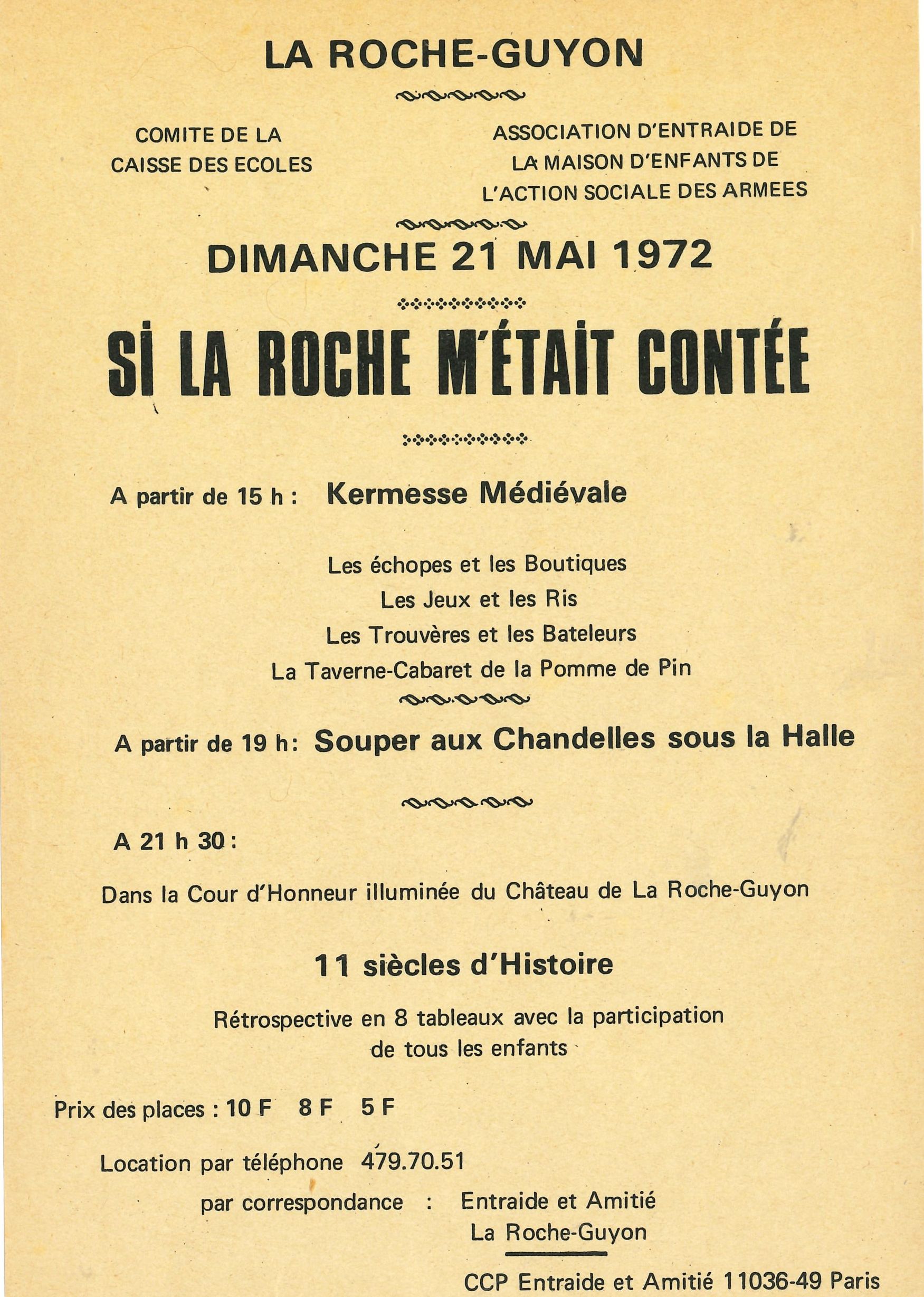 Une expérience originale de remise des prix festive pour les enfants des écoles avait été organisée dans la cour d'honneur du château en juin 1971. L'opération fut un succès, ce qui a conduit les responsables de l'école, de la Maison des enfants de se lancer dans un projet de kermesse médiévale et d'un spectacle avec les enfants racontant l'histoire du village "Si La Roche m'était contée". La municipalité a soutenu activement le projet et la Duchesse de La Roche-Guyon a donné son accord pour que le spectacle ait lieu dans la cour d'honneur du château.